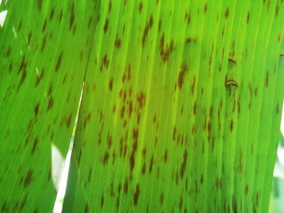 当前,正值多雨季节,田间监测发现有叶斑病发生,应指导蕉农及时采取防治措施,20—30天喷药1次,连续使用1—3次。喷药应在无风无雨时进行,喷药后3小时内下雨应补喷,使用丙环唑、氟硅唑等三唑类药剂时应避免触及幼果,减少果实药害。施药浓度参照说明书,不可任意提高浓度,且注意农药的交替使用,以提高农药防治效果,避免产生抗药性。