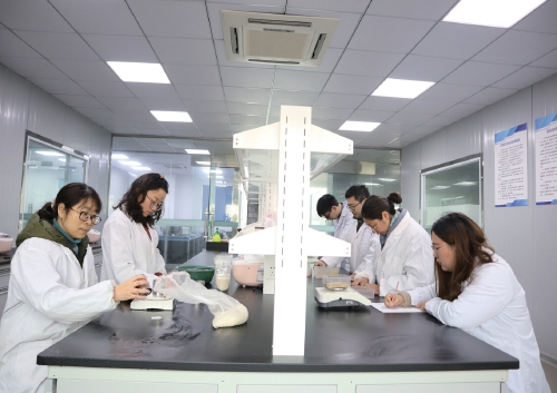 中垦种业研发中心技术人员在实验室进行稻米品质测试。 王怡 摄