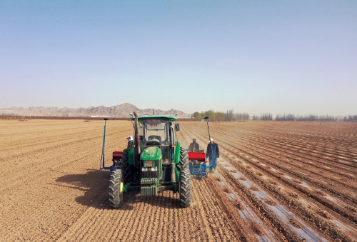 甘肃亚盛种业玉米制种基地运用卫星导航系统农机作业。 袁晓丽 摄