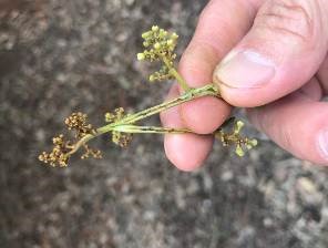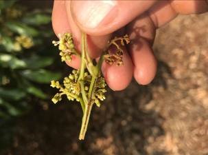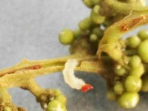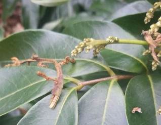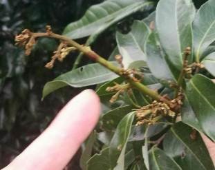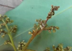 图3 海南被害的荔枝花穗-3(2018.02.14,示花穗轴上的蒂蛀虫化蛹孔)