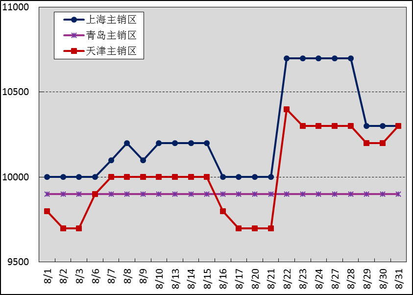 国内主销区:8月份,国产全乳标准胶上海市场平均价格10243元/吨,环比上涨261元/吨,最高价为10700元/吨,最低价为10000元/吨;青岛市场平均价格9900元/吨,环比下跌150元/吨,最高价为9900元/吨,最低价为9900元/吨;天津市场平均价格10013元/吨,环比上涨131元/吨,最高价为10400元/吨,最低价为9700元/吨。