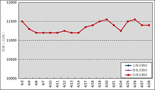 国内主销区:4月,国产全乳标准胶上海市场平均价格11345元/吨,环比下降218元/吨,最高价为11550元/吨,最低价为11200元/吨;青岛市场平均价格11345元/吨,环比下降214元/吨,最高价为11550元/吨,最低价为11200元/吨;天津市场平均价格11345元/吨,环比下降218元/吨,最高价为11550元/吨,最低价为11200元/吨。