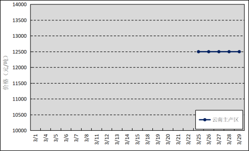 国内主产区:3月末,国内云南产区部分胶园投产,原料胶(折干胶)月均价格为12500元/吨,海南、广东产区尚未开割。