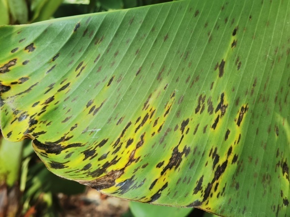 当前,正值多雨季节,田间监测发现有叶斑病发生,应指导蕉农及时采取防治措施,20—30天喷药1次,连续使用1—3次。喷药应在无风无雨时进行,喷药后3小时内下雨应补喷,使用丙环唑、氟硅唑等三唑类药剂时应避免触及幼果,减少果实药害。施药浓度参照说明书,不可任意提高浓度,且注意农药的交替使用,以提高农药防治效果,避免产生抗药性。